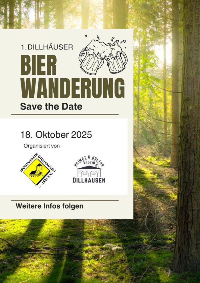 Die von Werner Heinrich organisierte Fahrrad-Tour stand unter dem Motto „Wäller-Mineralbrunnen“ und umfasste eine Streckenlänge von ca. 38 km. Für die Streckenführung der Wandertour durch Dillhausens Wälder mit einer Länge von ca.10 km zeichnete Astrid Schmidt verantwortlich. Start und Ziel für beide Touren war dann das Vereinsheim am Sportplatz Dillhausen. mehr...