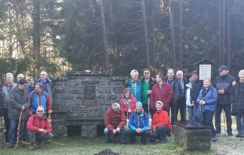 In Odersberg mit seinen rund 270 Einwohnern zeigte der Höhenmeter 470 m ü. NN. Nach dem Überqueren der Landstraße ging es hinauf zum Knoten auf 605 m ü. NN, am Baumlehrpfad und Adolf Weiss Denkmal vorbei zur Knotenalm. Wie im Vorjahr hatten die beiden Hüttenwirte Herbert Eckerth und Wolfgang Meuser wieder gut eingeheizt und sorgten für die Bewirtung der Teilnehmer. Hierfür den beiden ein herzliches Dankeschön.